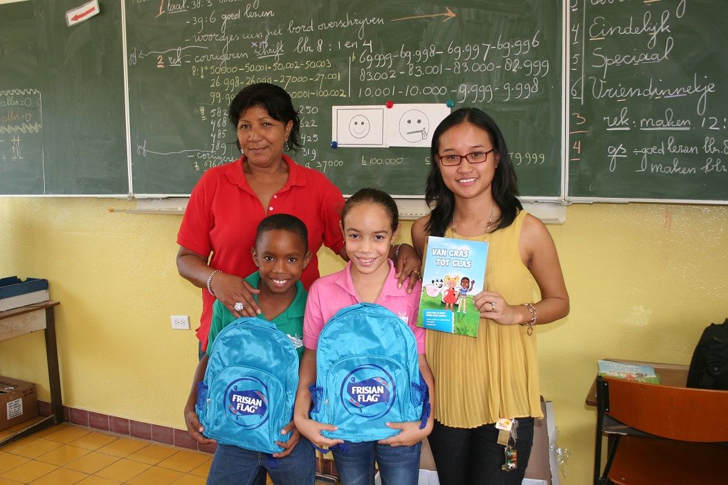 Informacion semper ta hopi esencial y importante y pa e motibo aki Frisian Flag ta introduci su projecto “Van Gras tot Glas” pa asina informa tur muchanan cu ta atende scol primario e origen y proceso cu ta pasa cu e lechi cu tanto nan ta gusta.